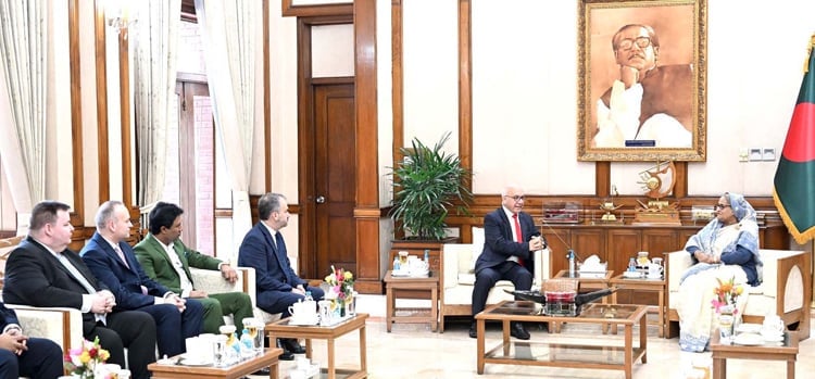 এ সময় প্রধানমন্ত্রীর বেসরকারি শিল্প ও বিনিয়োগ উপদেষ্টা সালমান ফজলুর রহমান, অ্যাম্বাসেডর-অ্যাট-লার্জ মো. জিয়াউদ্দিন ও প্রধানমন্ত্রীর কার্যালয়ের (পিএমও) সচিব মোহাম্মদ সালাহ উদ্দিন উপস্থিত ছিলেন।