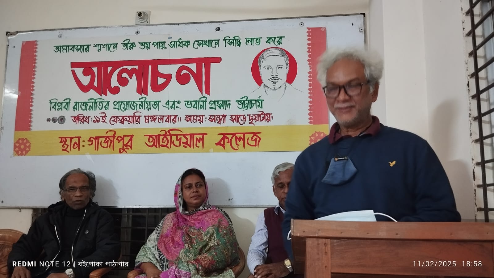 গাজীপুরে ‘বিপ্লবী রাজনীতির প্রয়োজনীয়তা এবং ভবানী প্রসাদ ভট্টাচার্য’ শীর্ষক স্মরণ সভা ও আলোচনা অনুষ্ঠিত হয়েছে