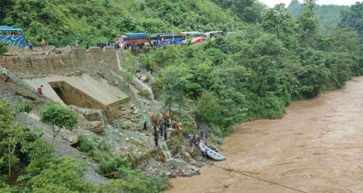 নেপালের মদন-আশ্রিত মহাসড়কে ভয়াবহ ভূমিধস হয়েছে। এই ঘটনায় যাত্রীবাহী দুটি বাস সড়ক থেকে ছিটকে ত্রিশূলী নদীতে ভেসে গেছে। বাস দুটিতে অন্তত ৬৩ জন যাত্রী ছিলেন। তারা সবাই নিখোঁচজ রয়েছেন।