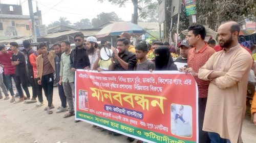 কিশোরগঞ্জের কটিয়াদীতে সাম্প্রতিক সময়ে আইন শৃঙ্খলা পরিস্থিতির চরম অবনতি, চুরি, ডাকাতি, ছিনতাই এবং কিশোর গ্যাংয়ের উৎপাত বৃদ্ধির প্রতিবাদে সাধারণ ছাত্র জনতা ও কটিয়াদীবাসী মানববন্ধন করেছে। স্থানীয় প্রশাসনের নিস্ক্রিয়তার অভিযোগ তুলে…