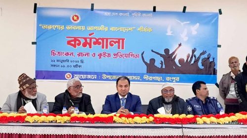 রংপুরের পীরগাছা উপজেলা হল রুমে বুধবার বিকেলে "তারুণ্যের ভাবনায় আগামীর বাংলাদেশ" শীর্ষক কর্মশালা অনুষ্ঠিত হয়েছে। এতে চিত্রাংকন, রচনা ও কুইজ প্রতিযোগিতা এবং স্থানীয়ভাবে কিছু খেলাধুলার আয়োজন করা হয়। প্রধান অতিথি…